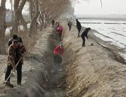 二是清理渠备春灌。阿依巴格镇柯坪村集中组织农牧民群众对辖区内的灌溉沟渠堵塞情况进行清理、清淤,确保引水沟渠通畅。