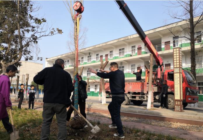 3月5日上午,春暖花开,阳光和煦。襄阳市襄州区黄龙镇中心学校志愿服务团队在校长范万平带领下,开展了以“喜迎两会开幕,创建生态文明学校”为主题的义务植树活动。该校优秀毕业生、民营企业家朱运军向母校捐赠了一批树种。