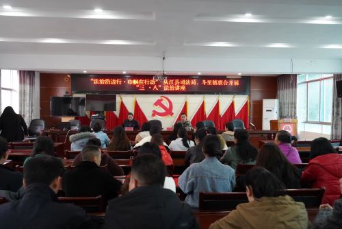 从江县地处黔桂两省区交界处,素有“黔南门户,桂北要津”之称,与广西三江县、融水县多个乡镇接边。从江县司法局始终把法治宣传教育促进民族团结进步作为维护接边地区和谐稳定的大事要事来抓,强化与接边地区各级党委、政府携手谋划,互联互动。3月8日,从江县司法局以“三八”妇女节为契机,进一步深化接边地区法治宣传教育,提高妇女依法维权意识和民族团结进步,分别联合斗里镇人民政府,联合县妇联、公安、检察院、法院深入斗里镇和丙妹镇接边地区开展“法治沿边行·巾帼在行动”主题“三八”妇女节系列活动。