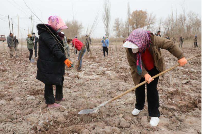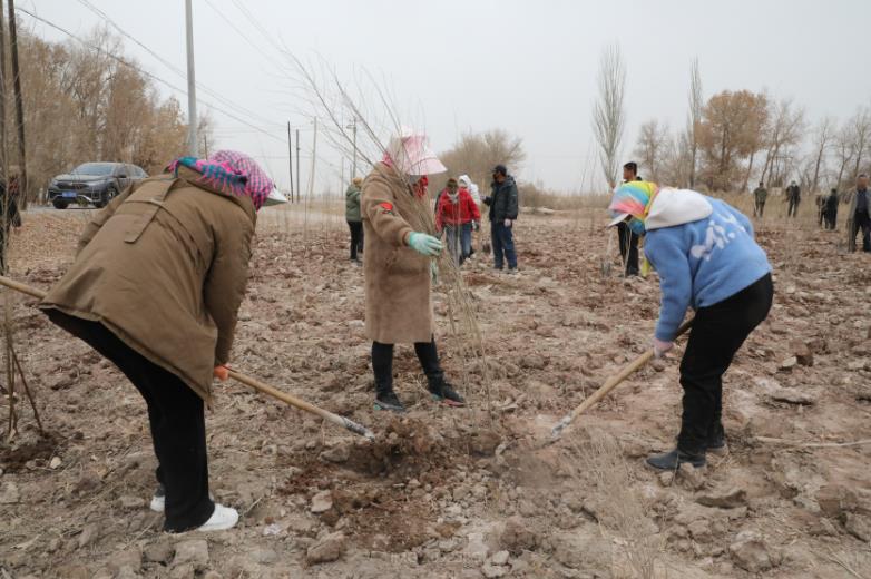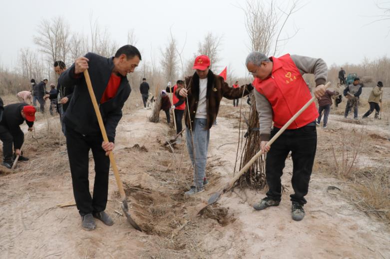 3月16日,新疆生产建设兵团第一师二团各基层单位开展“植树造林、绿化家园”活动,职工正忙着栽种各种树木,为家园添绿,践行绿水青山就是金山银山的理念,履行生态卫士职责。
