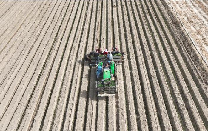 人勤春来早,功到秋华实。起垄打畦、搬运葱苗、培土栽种,3月29日,新疆兵团一师七团三连大葱幼苗移栽现场一派繁忙,处处“葱”满丰收的希望。