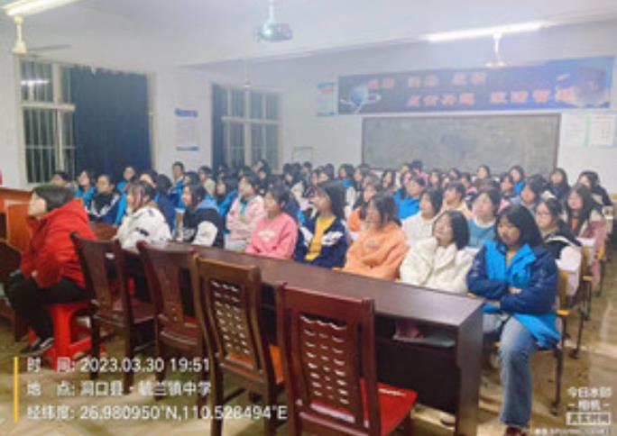 为促进女生身心健康发展,提高自我保护意识,增强自我保护能力,3月30日晚三,洞口县毓兰镇中学组织该校女生开展了女生生理健康知识讲座。