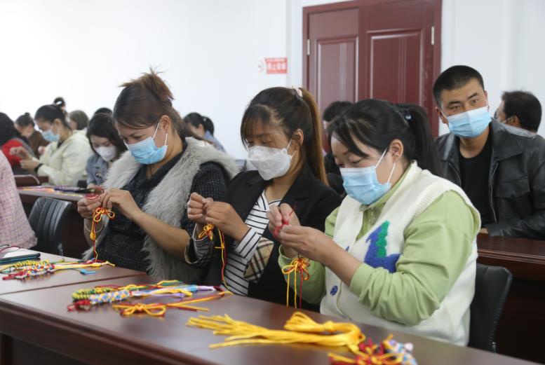 培训上,授课老师采用面对面培训、手把手讲解的教学方式,为现场50余名学员讲解吉祥结、凤尾结、金刚结等编制手法,传授大家听得懂、学得会、用得上、见效益的实用技术,并引导他们制作“蛇柱”、“虾”等简易挂件。学员们学习积极性高,学习氛围活跃,学习效率高,仅仅开训一天,大多学员已经能够独立编织出简单的成品。