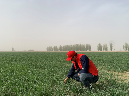 目前,新疆生产建设兵团第一师阿拉尔市九团八连冬小麦已全面进入拔节期,既是管理的关键时间,也是小麦病虫害多发期。4月13日,连队农业技术人员深入田间地头,对冬小麦观测田开展冬小麦拔节期苗情调查。
