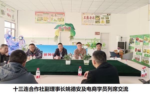 电商直播带货的火爆,让九团十三连看到提升香梨经济效益增长的新出路,为探索一条正确的电商直播发展路线,4月22日,新疆生产建设兵团第一师阿拉尔市九团十三连党支部书记兼合作社理事长张堉炜,通过九团社事办,邀请瑞豪职业技能培训学校副校长马长生,新疆安颐土特产有限公司法人岳军,十三连党支部副书记陈斌,合作社副理事长姚德安及电商培训班优秀学员主播,进行深入座谈交流。