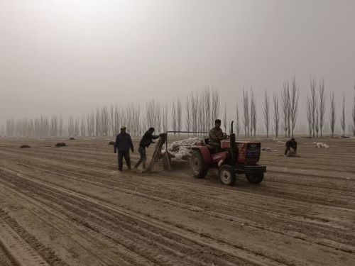 4月20日大风沙尘暴土天气过后,新疆生产建设兵团一师阿拉尔市副政委张勇、副市长马荣华一行赴九团6连就受灾棉田灾后救灾重播开展指导工作。九团团长刘光辉、副团长杨玉萍、农发中心主任杜新军陪同。