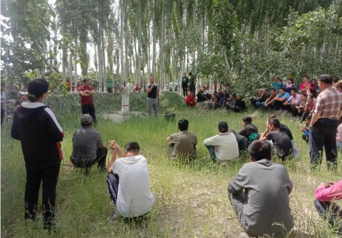 5月23日,尤喀克格西木艾日克村科技特派员在田间地头向农民讲授沤制绿肥的科学原理,并现场教授操作方法及注意事项。