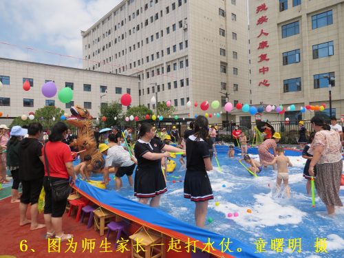 活动开始,园长王一淳致辞欢迎所有家长带孩子前来参加活动,全体老师一起在游泳池中跳起了集体舞。孩子们在家长的陪同下,在水中玩水枪、冲锋小艇、打水仗等亲子游戏。活动结束后,幼儿园为家长和宝贝准备了红糖姜汤,带宝贝饮用;参加活动并积极陪孩子游戏,活动结束时颁发奖品。让孩子们过上了真正喜欢的儿童节!
