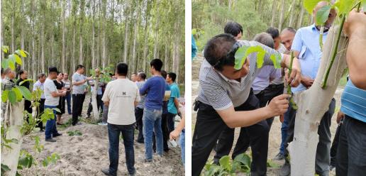 米吉克林管站站长牙生·肉孜 在10村1组核桃园,组织村民进行了现场培训,给村民“手把手”传授核桃夏季嫁接技术。