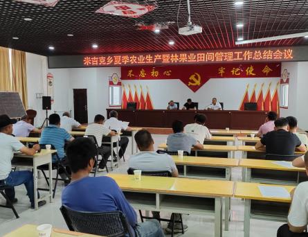 会上米吉克乡党委副书记、乡长克然木·买买提对各村安排下一步的工作,要求切实增强推进特色林果业高质量发展的责任感,积极引导农民抓好当前果树夏季田间管理,充分发挥技术优势,强化科学技术推广,确保农村稳定、农民增收。(米吉克乡)