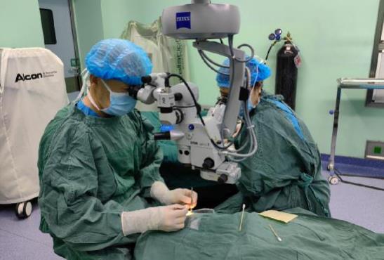 值班医生齐瑞楠检查患儿左眼后,发现患儿前房变浅、炎性渗出,部分虹膜嵌顿在伤口,外伤性白内障,立即给二线值班医生吴泽勇副主任打电话汇报情况,并准备手术相关事宜。