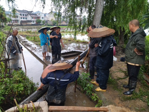 在文峰村沟渠清淤现场,村民们手拿铁铲、锄头、钉耙等工具,清淤泥、通沟渠,即使天下大雨,群众们依然如火如荼地进行,个个累得满头大汗。据文峰村支部书记介绍:“本村多条沟渠由于长时间存在淤泥和垃圾杂物,沟渠堵塞情况比较严重,现正处于农田插秧关键时期,农田用水量大,为了农田有水,秧苗插得下去,长期用水得到保障,我村在水务站工作人员的规划指引和技术指导下,积极发动党员干部、群众志愿者对本村沟渠进行全面清理,此次沟渠清淤行动,切实帮助群众解决灌溉困难,确保农田长效灌溉,此次清淤累计约2.5公里,农田收益面积达1000余亩,确保了灌溉沟渠排水、引水畅通。”