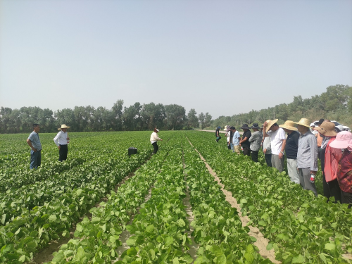 6月13日,新疆农垦科学院作物研究所所长战勇、师市农业农村局局长袁劲松、师市农科所所长王亮一行五人赴新疆生产建设兵团第一师阿拉尔市九团针对大豆、花生近期苗期管理技术要点开展指导培训。