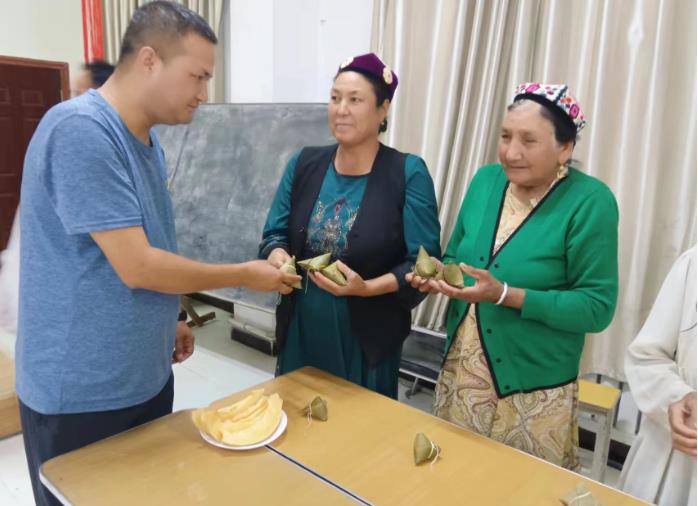 6月22日,时值中华民族的传统节日--端午节,尤喀克格西木艾日克村党支部、村委会开展“老有所为,永远跟党走”主题活动,邀请本村60周岁以上老人、村干部、工作队、儿童共同参加,本次活动主题是:“粽香端午迎佳节,万粽一心促团结”旨在加深本村各民族交流交融,共同迎接传统节日,深化民族团结工作。