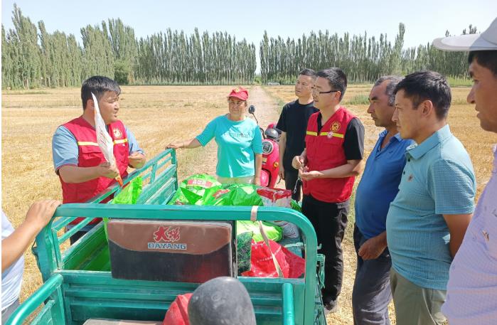 为抢抓农时,保障小麦夏收与玉米夏种同步开展,6月30日,中国石化股份有限公司新疆阿克苏石油分公司驻沙雅县努尔巴格乡亚当村“访惠聚”驻村工作队积极组织新时代文明实践站志愿者、村干部深入田间地头开展“三夏”助农志愿服务活动,助力粮归仓、种下地。
