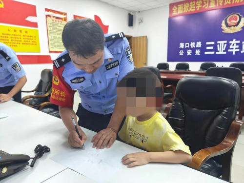 近日,三亚站一名工作人员将一名四岁走丢男孩送到三亚站派出所,民警迅速帮忙寻找,最终找到了孩子的家人。