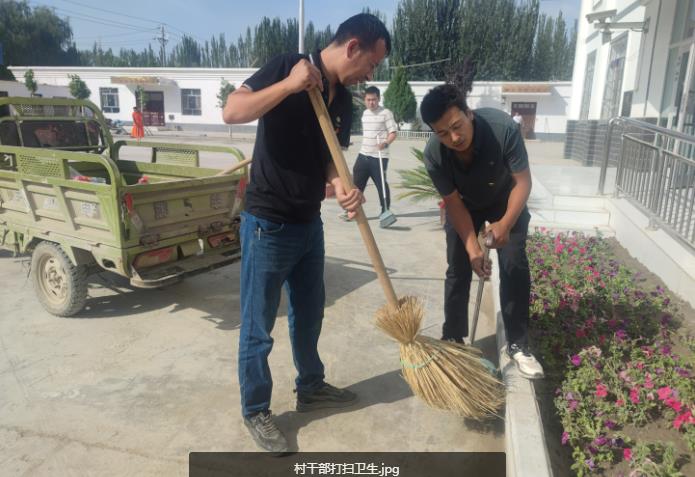 7月4日,村党支部书记阿地力·吐地组织村干部、工作队员对院内的卫生死角进行彻底打扫,拔除花园里的杂草,清洗大门灰尘,进一步改善村委会院内环境。