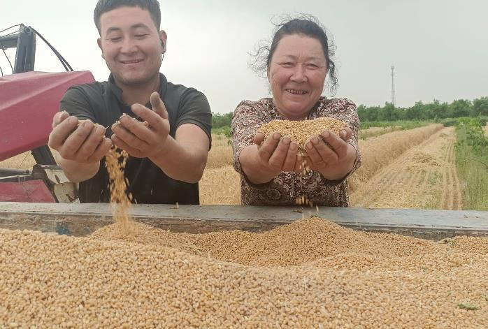 “工作队和村干部都来帮我收麦子,家里的80多亩麦子不到一天的时间就收割完了,还帮我晾晒,让我好感到,真是太感谢他们了。”萨提村村民麦麦提·托合尼亚孜高兴地说。