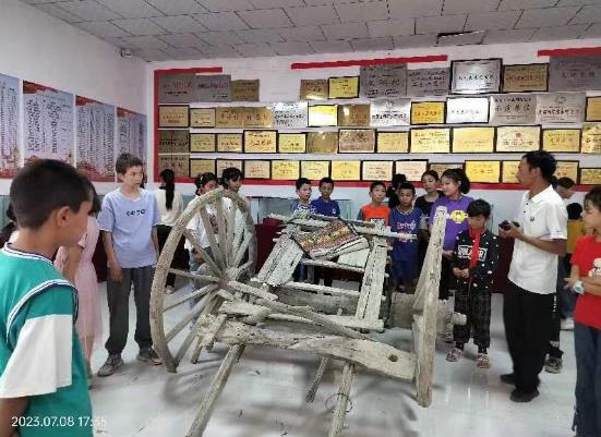 (阿克苏地委史志办驻温宿县托乎拉乡河畔村“访惠聚”工作队、河畔村“两委”组织本村返乡学生开展暑假“第一课”——参观河畔村方志馆)
