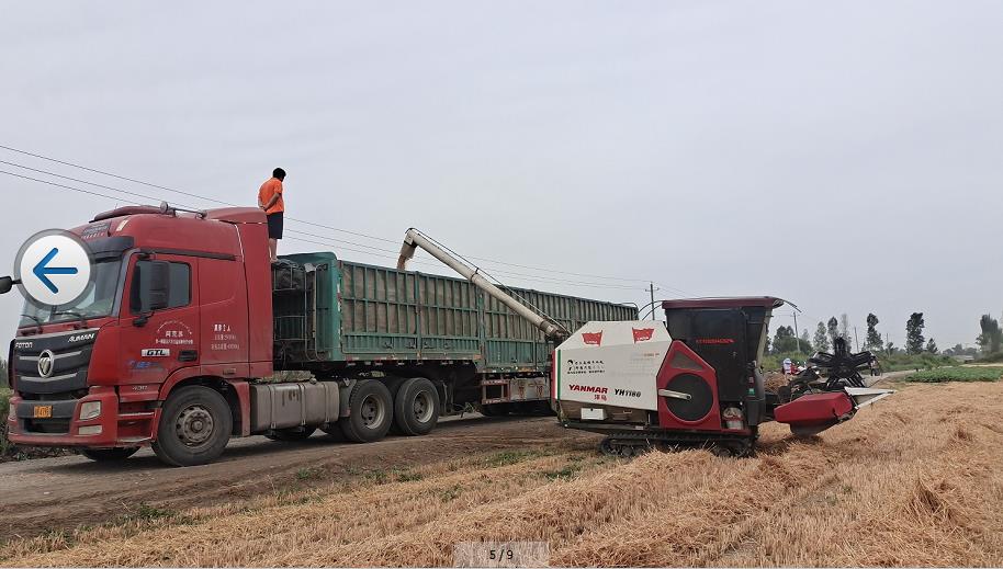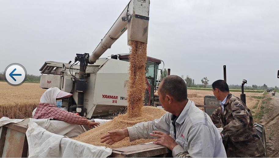 麦田里,大型收割机开足马力,在麦田里来回穿梭。在广袤的土地上,一垄垄成熟的小麦被卷进机器,收割、脱粒等步骤一气呵成。一颗颗饱满的麦粒源源不断地被投放到运粮车里,田间里,一派丰收景象。