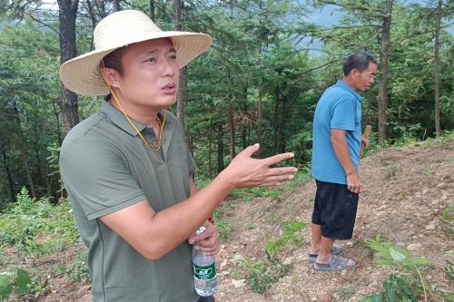 (图为胡会长向我们讲解黄精的种植环境的图片)
