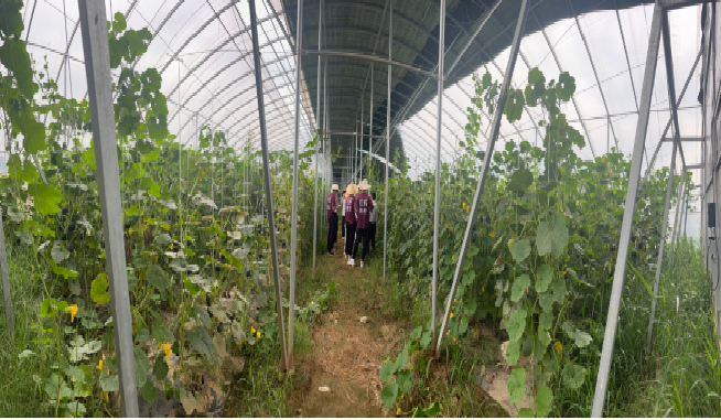 江西应用科技学院学生社团指导中心逐梦青年团于7月8日、7月9日在马当镇新进村调研参观大棚蔬菜。