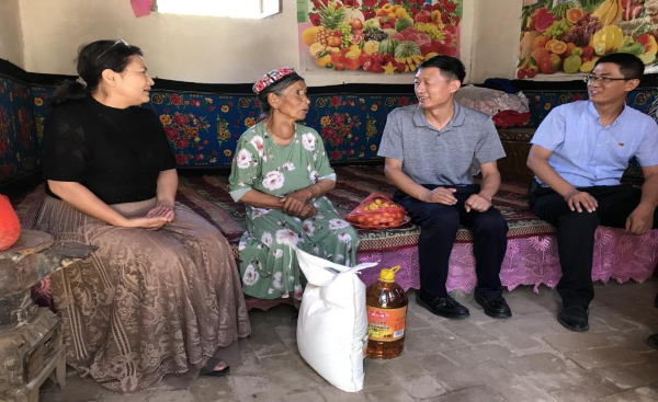 库尔班·买米提力今年42岁一直没有娶妻,和父母住在一起,父母都已经70岁了,身体不太好,他自己今年查出糖尿病、皮肤病,李广进在走访时得知这个情况,立刻联系了镇民政办,亲自为其申请五保和特困救助。经常送去了米面油等生活用品。