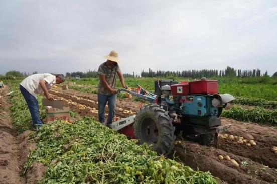 8月10日,在新疆库车市乌恰镇蔬菜新村顺宏合作社的2300余亩土豆喜获丰收,丰收现场井然有序,呈现着繁忙的景象。以合作社为龙头,以“统一指导、扩大规模、打造品牌、实现统销统购一条龙服务”为工作要求,带动了蔬菜产业的发展。