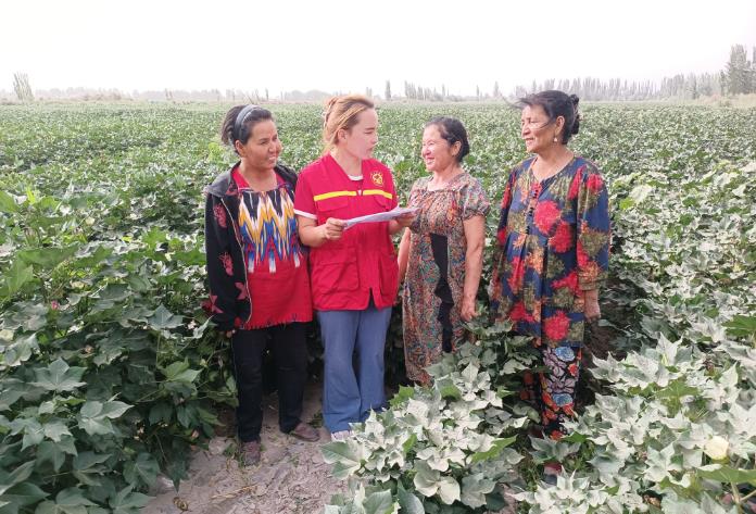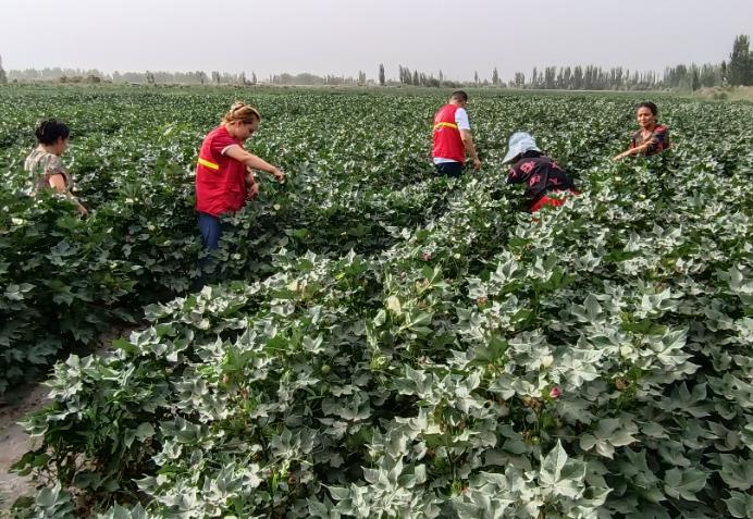 “真的太谢谢你们了,有了你们的帮忙,总算把棉花地里的杂草除干净了。”沙雅县努尔巴格乡亚当村村民阿斯亚姆·达依姆感激地说。8月16日,在努尔巴格乡亚当村田间地头,党员志愿服务队身穿醒目的红马甲,一边帮助缺少劳动力、年老体弱的群众做好棉花田间管理杂草清理工作,一边与群众面对面宣讲党的二十大精神,真正做到了“宣讲”“助农”两不误。