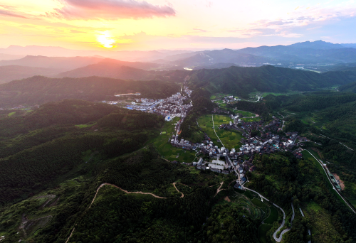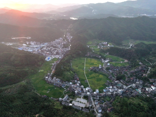 初秋时节,贵州省黔东南苗族侗族自治州从江县西山镇,村庄、鼓楼、道路、田园、小溪、青山在晚霞的映衬下,呈现出一幅和美乡村生态画卷。近年来,从江县以生态文明引领乡村振兴,大力实施和美城乡“四大行动”,持续推进农村环境综合整治,持续改善农村人居环境,打造宜居宜业宜游的和美乡村。(通讯员:龙梦前)
