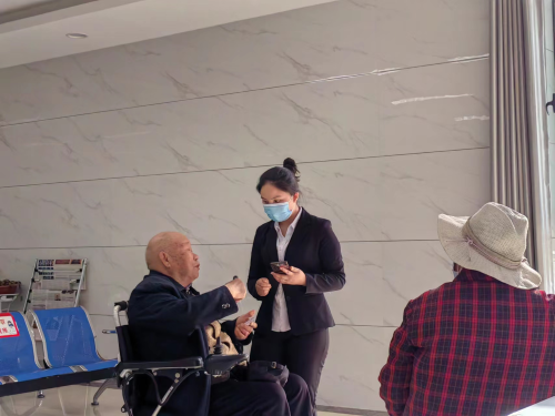 图为:近日,温宿县社保中心窗口工作人员为行动不便的老年人查询养老金领取情况(江凯摄)
