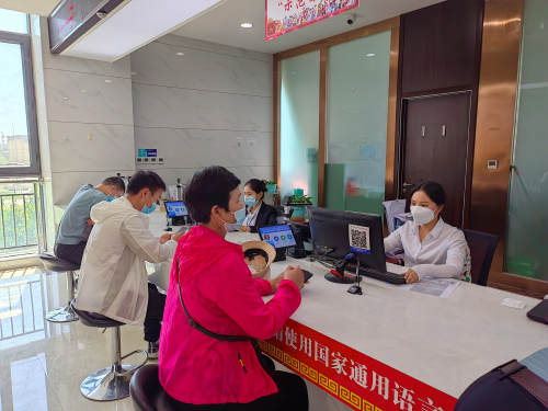 图为:近日,温宿县社保中心窗口工作人员为群众办理社保业务(江凯摄)