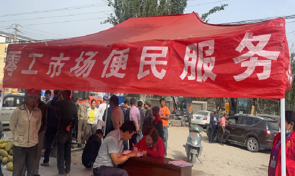 图为:加强岗位信息收集,拓宽零工信息发布渠道,利用零工市场综合服务大厅、专场招聘、就业服务平台等线上线下渠道,发布零工求职招聘、技能培训等服务信息。(江凯摄)