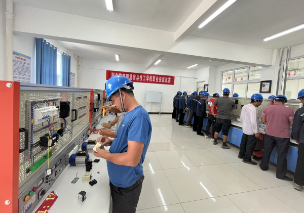 图为:为进一步提拓宽全县青壮年劳动力就业渠道,县人社局通过多方协调,在县技工学校组织开展了低压电工培训班,旨在提升全县劳动力就业技能,实现稳定就业(江凯摄)