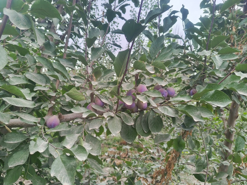 走进西梅园里,只见一排排西梅树株距统一、排列整齐,一串串色泽红艳、个大饱满的西梅挂满枝头。职工黄永兵介绍到:“2019年,连队鼓励职工发展果树种植,我报名种植了20亩西梅,经过这几年的培育,西梅终于挂果了,今年价格在20元/公斤以上,效益很可观。”