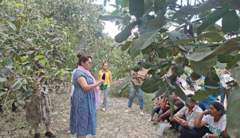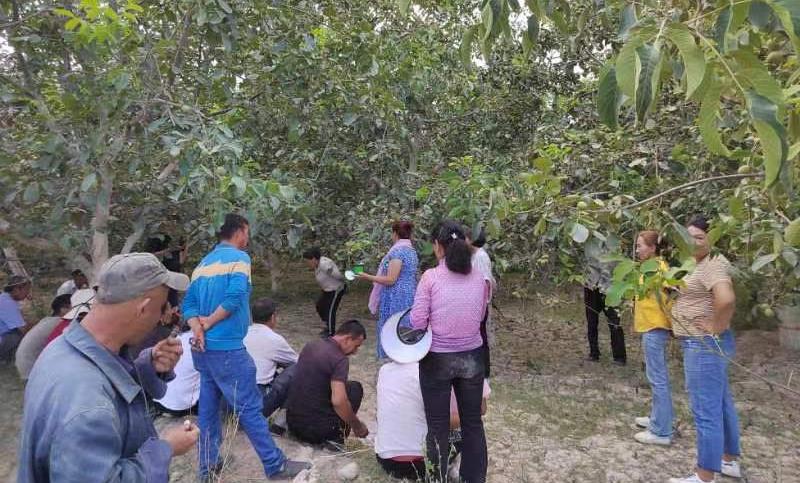 近日,温宿县吐木秀克镇曲达村组织辖区群众深入田间地头,村委会主任阿斯古丽·亚库普现场传授核桃树的修枝剪枝技术、病虫害防治等深受果农们的欢迎。