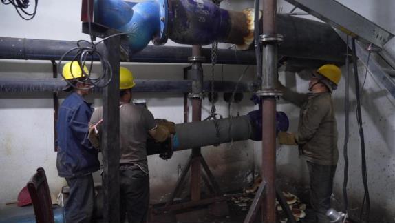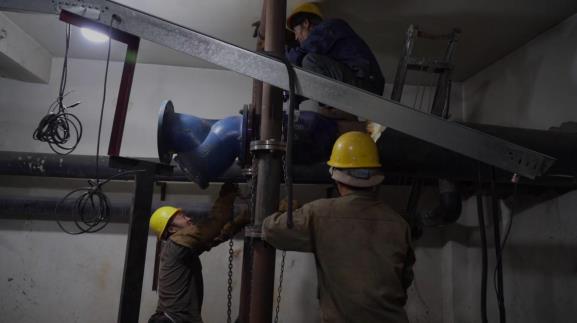 在库车市瑞嘉华府小区的地下室,施工人员正在铺设对接新的供热管道。据了解,由于该小区的供热设施存在老化的情况,旧供热管道存在跑冒滴漏现象,大大影响了供热质量。通过此次改造,小区供热基础设施将得到极大改善,也能提升小区居民的供热体验感。
