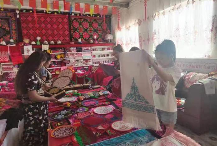 这些绣品工艺精巧,色彩绚丽,图纹美观,具有一定的象征性。新疆温宿县博孜墩村以“绣”为媒,通过携手当地非遗传承人,举办各种培训班、展览展示、宣传推广等活动,让非遗保护项目及传统工艺走入基层,并带领绣娘们闯出一条居家致富路。