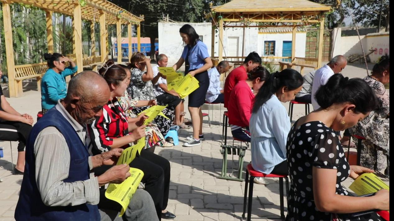9月12日,新疆库车市人民检察院驻玉奇吾斯塘乡兰干村“访惠聚”工作队开展“守住钱袋子·护好幸福家”为主题的防范非法集资宣传活动。