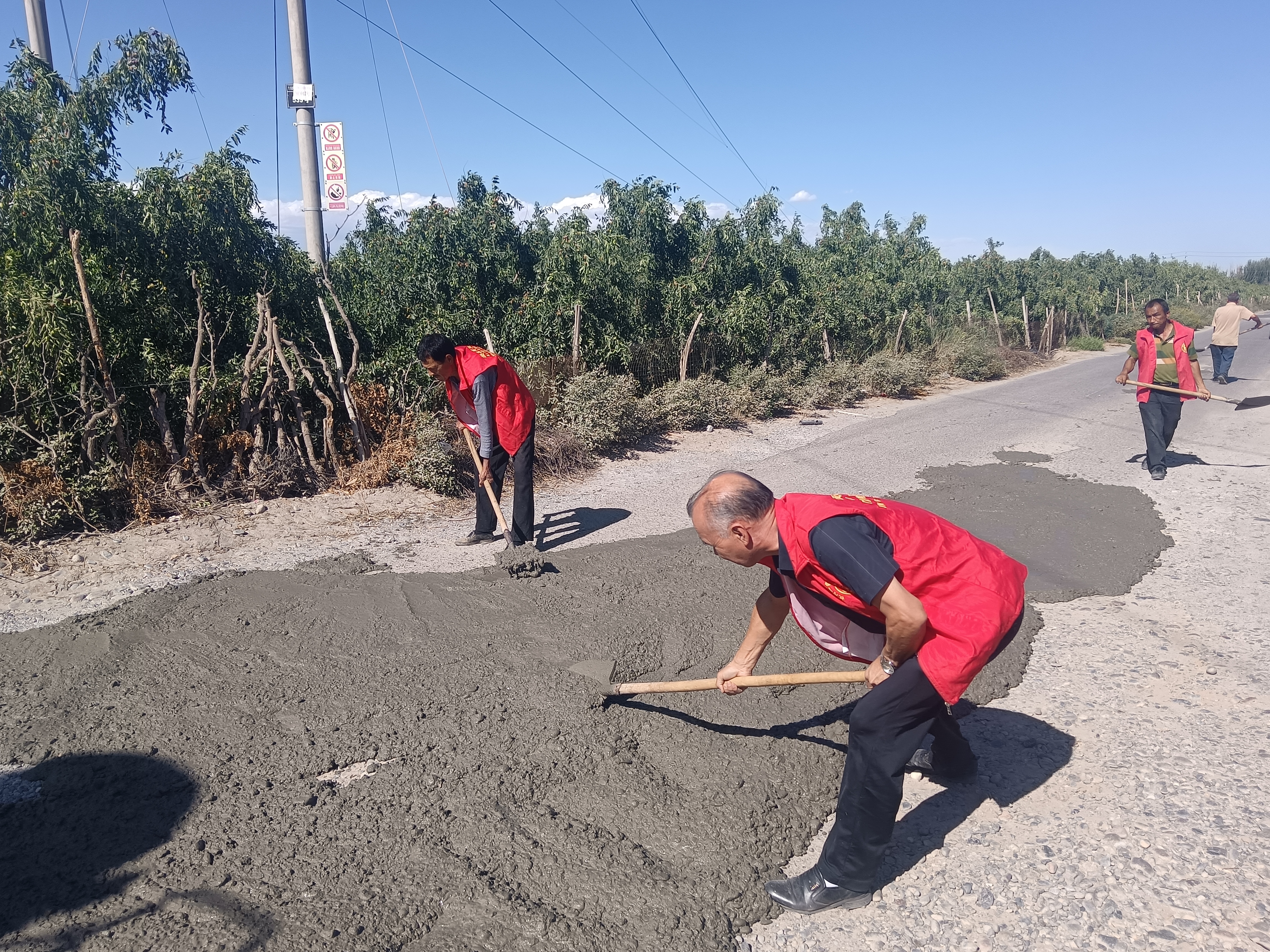 枣林社区党支部高度重视,立即研究讨论有效解决办法,最终决定组织党员干部在群众收红枣之前对破损路面进行修缮,最大程度保障群众出行安全。