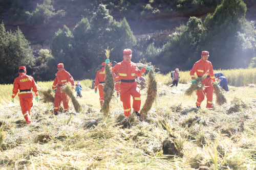 经过三天连续抢收,消防员们成功帮助群众抢收青稞40余亩。“虽然很累,但是能够帮助群众趁天气好把地里的青稞全部收割回来,心里面全是满满的成就感。”实习消防员向巴青觉在收割结束后说到。(通讯员:刘星文、张勇)