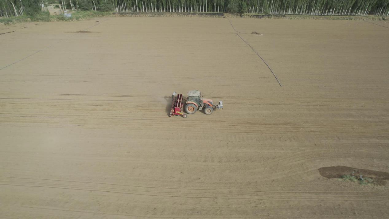 9月20日,在库车市牙哈镇艾日克博依村冬小麦种植现场,蔚蓝天空下,大马力导航播种机在田里穿梭往返,机声隆隆,播种工序有条不紊,大家干劲十足。