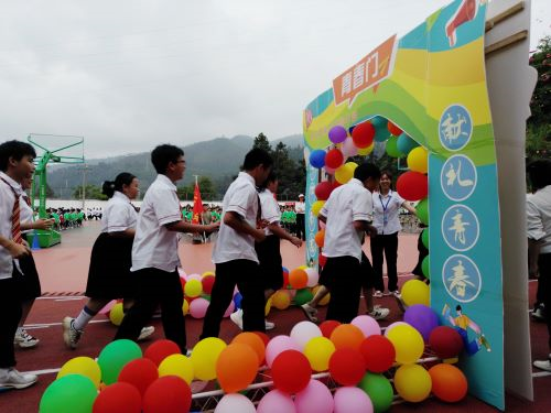 七年级、九年级学生统一穿校服,教师统一穿正装,八年级学生统一穿青春礼服,走进了红地毯。此时礼炮齐鸣、气球飘飞。在主持人周都静带领下,走进了青春之门并进行青春门礼仪仪式。最后,大家走近青春印展板用多种彩色印泥盖上自己青春的印记并进行签名。