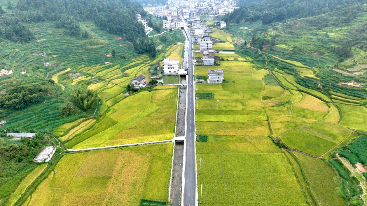 X036龙卓公路穿过金黄稻田(何雯 供图)