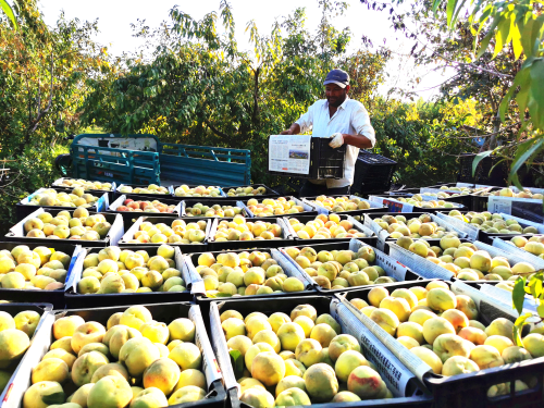 2023年10月6日,农户在新疆维吾尔自治区阿克苏地区阿瓦提县巴格托格拉克乡英买力村果园地里采摘“九月菊”桃子。眼下,英买力村种植的800亩“九月菊”桃子进入采摘期,农民抢抓时机采收,及时供应市场需求。近年来,阿瓦提县积极调整农业产业结构,采取“党支部+合作社+基地+农户”模式,大力发展恐龙蛋李、芒果杏、“九月菊”桃子等特色种植产业,带动群众增收致富,助力乡村振兴。(阿瓦提县委组织部:包良廷)