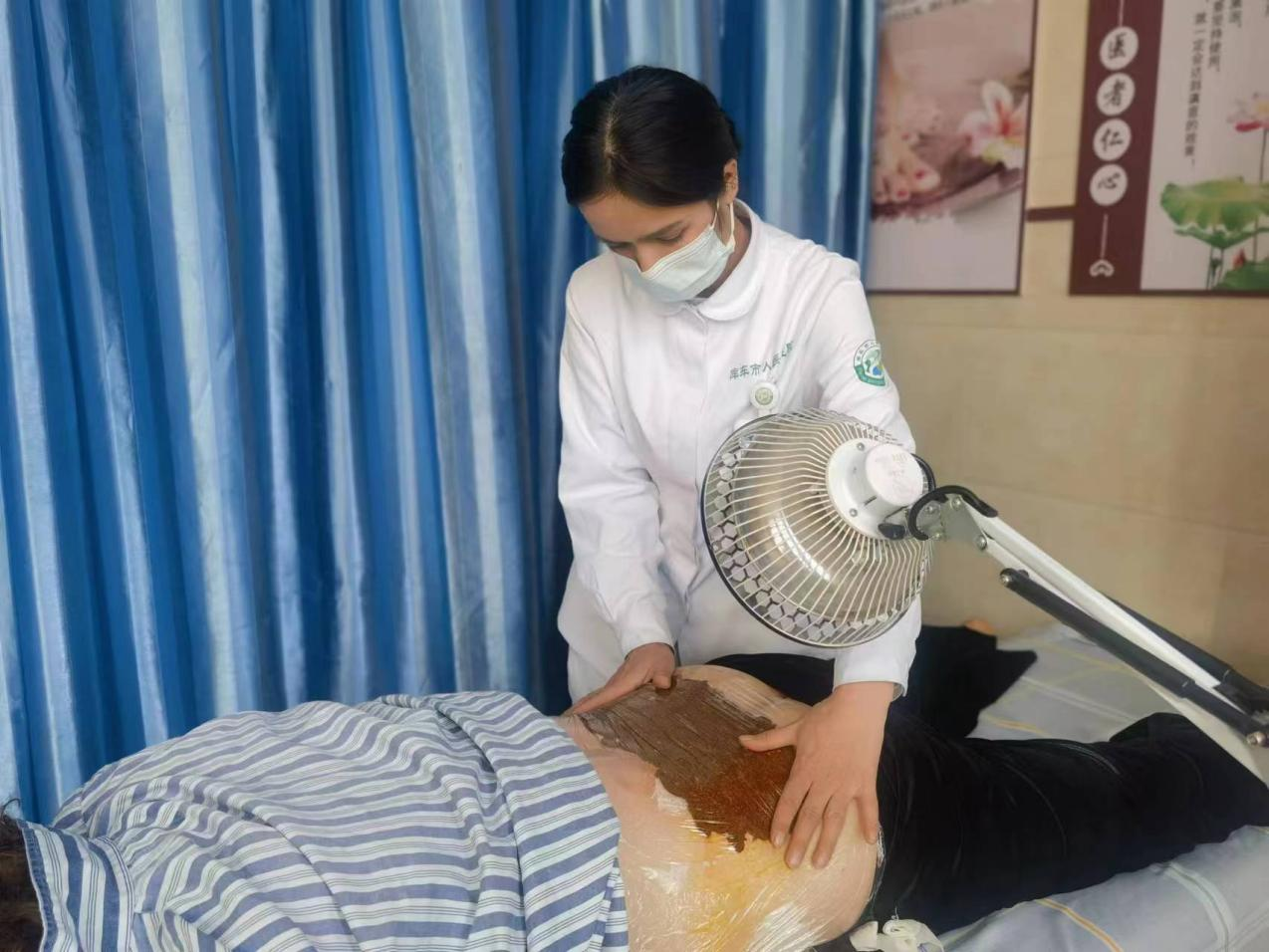 热先古丽以颈椎病在中医科住院,入院后主管医生全面评估后,制定了针灸+推拿+口服中药+艾灸+拔罐+中药塌渍+穴位注射+中药足浴+理疗仪器的综合治疗方案,短短几天的中医特色治疗患者颈肩部疼痛,上肢麻,头疼等症状明显缓解,整个人精气神好了不少。