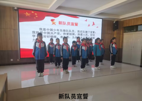 最后,大队辅导员刘老师宣读新入队同学名单,老队员们为他们系上鲜艳的红领巾。少先队员们在队旗下宣誓,洪亮的声音是新队员们将誓言深深镌刻在心中的有力证明。此次入队仪式,在队员们响亮的呼号声中圆满结束!(九团二中:庄万秀、都莉敏)
