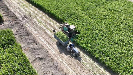 村民牙生·依克木在小麦收割后,种植了200亩的复播青贮玉米,并提前与外地商户签订了合同。牙生·依克木说:“青贮玉米每亩能产3吨以上青贮饲料,今年市场行情挺好的,我大概能收入16万元。”