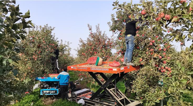 金秋十月是个收获的季节。在阿克苏市依干其镇4组多浪红农民专业合作社的果园里,苹果树上挂满了红彤彤的大苹果,果农背着筐子爬到梯子上摘苹果,一个个密密麻麻又大又红的苹果高高地挂在树上,果农们一边摘着苹果一边听着音乐哼着小曲,火红的苹果映红了果农们的笑脸,尽享丰收的喜悦。