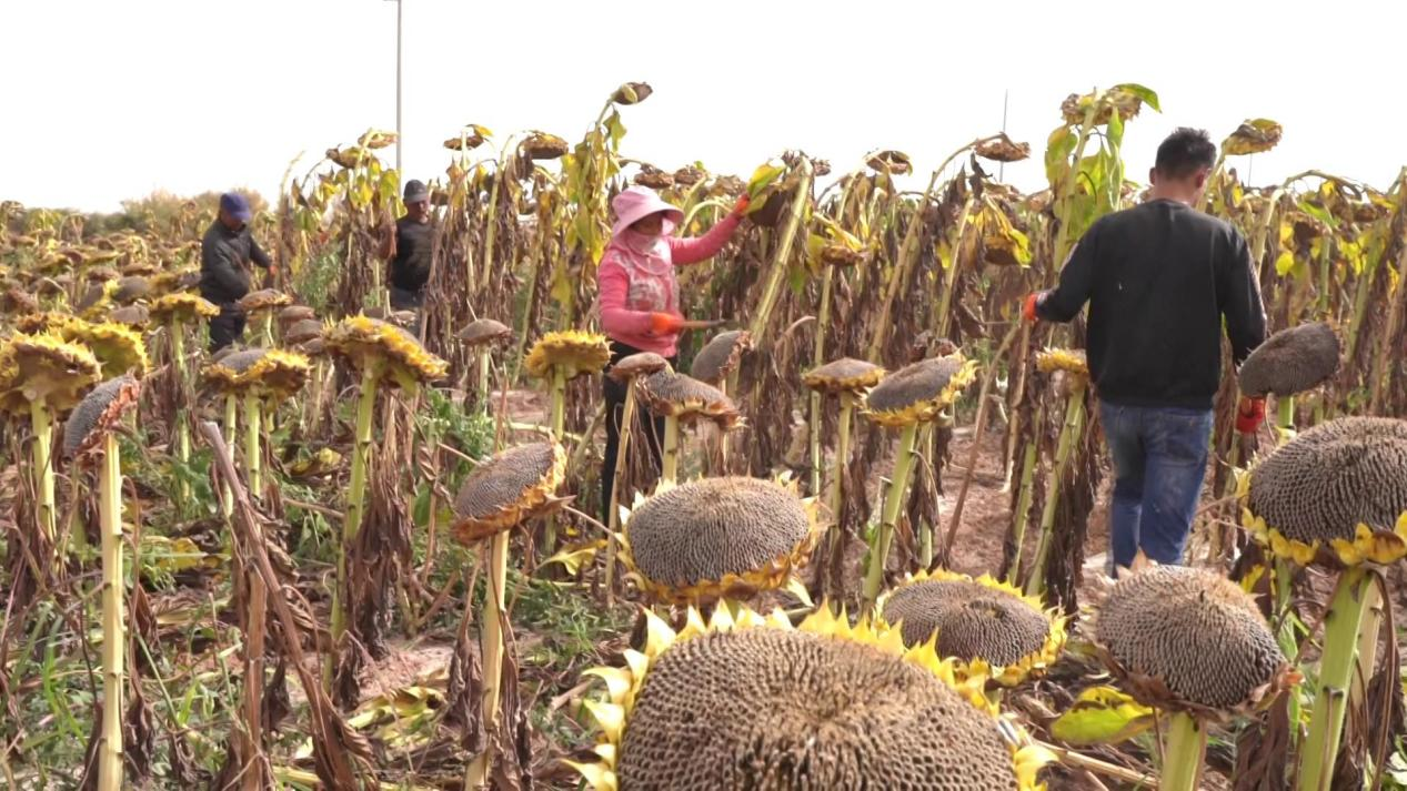 由于向日葵生长周期较短、适应性强,具有耐旱、耐盐碱等特点,塔格玛克村凭借独特的地理优势和光照条件,使得今年种植的向日葵喜获丰收,品质十分优良,亩产在250公斤左右,每公斤收购价在12至14元之间。向日葵收获后,秸秆和葵花粕还可用于牲畜的饲养,有效推动了生态农业的良性发展。